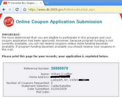 So for the past million years, the stupid television has been telling us to call to get our DTV conversion coupons. They do it EVERY SINGLE DAY. Two weeks ago, I even berated Matt Pearl about it two weeks ago (Sorry, Matt). But as of right now, they’re not mailing out coupons cause they’re “out of money.”