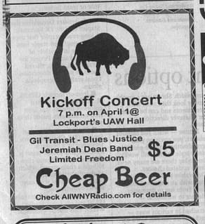 The 24/7 all-local music stream that is All WNY Radio kicked off 11 years ago today in the UAW Hall in Lockport with four bands and — as you can see from the ad that appeared in the Lockport Union-Sun & Journal — cheap beer.