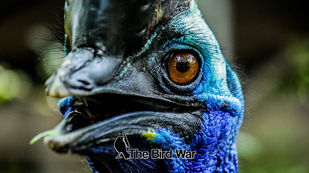 Cassowaries are native to New Guinea and parts of Australia, and are known to attack people and animals if they feel threatened. They are similar to emus and stand up to 6 feet tall and weigh up to 130 pounds, with black body feathers and bright blue heads and necks.