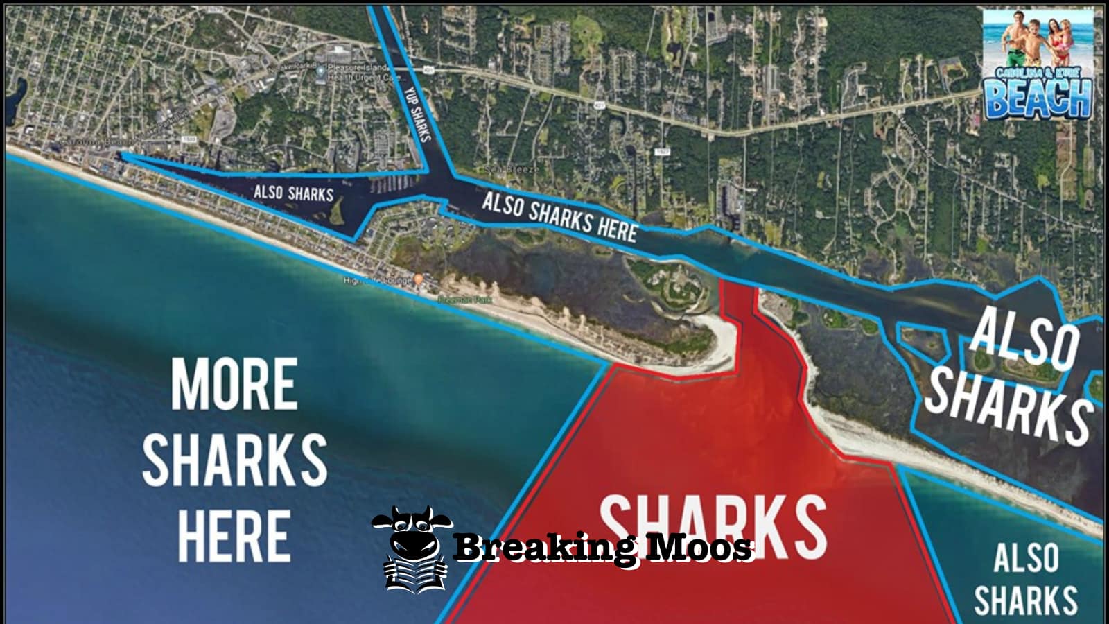 Carolina Beach & Kure Beach Community‘s page posted a map on Wednesday showing where sharks could be found. Hint: They’re in the water.